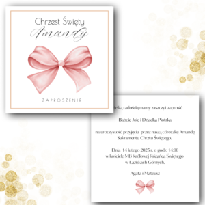 Zaproszenie na Chrzest Święty – Różowa kokardka