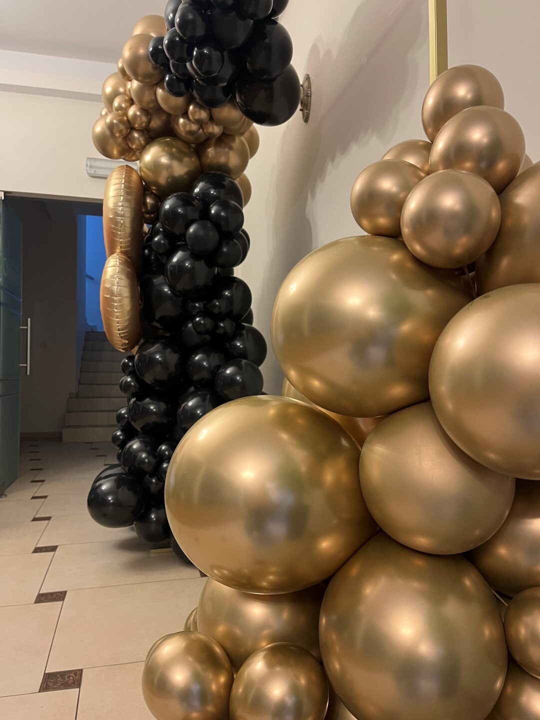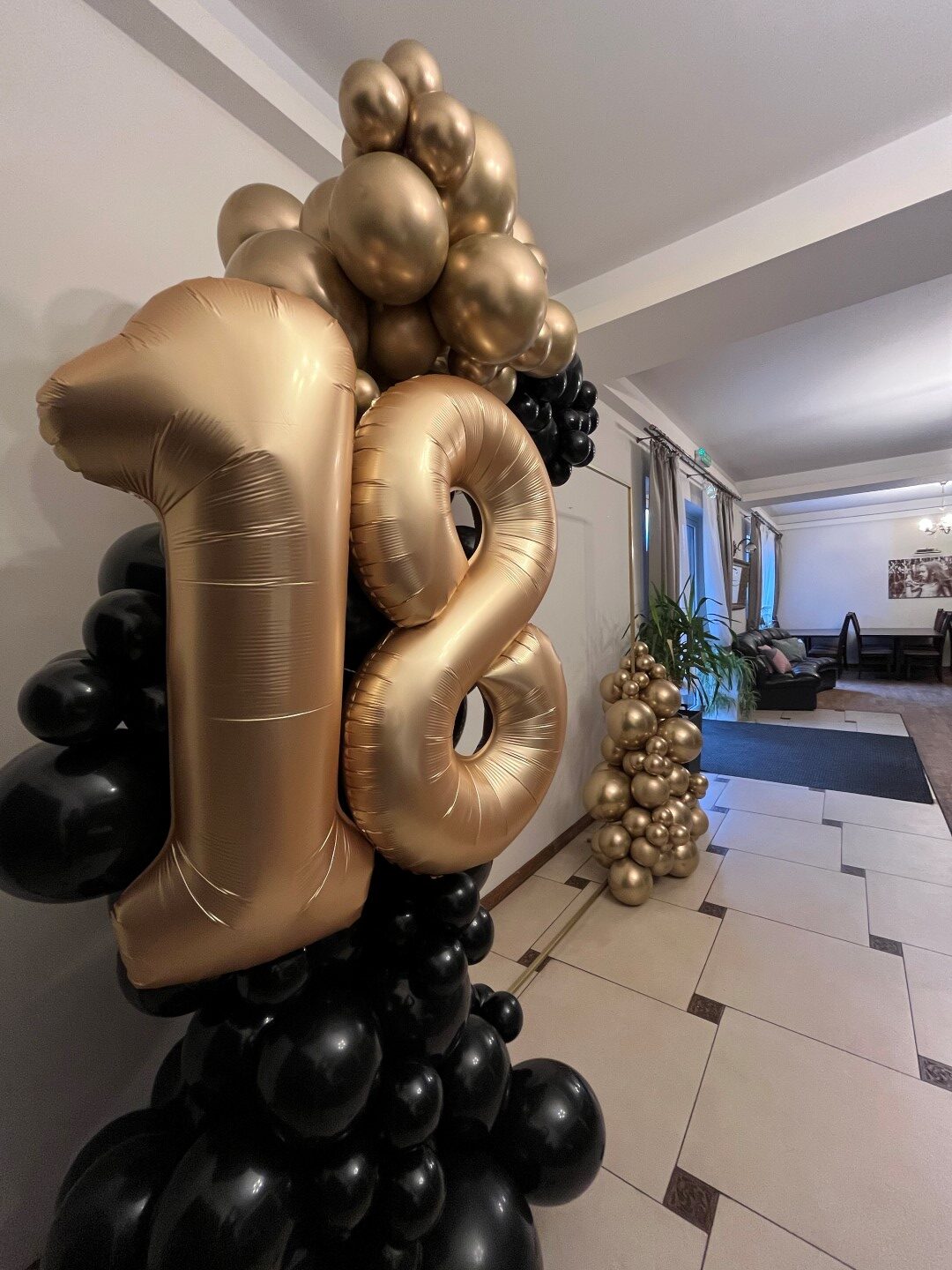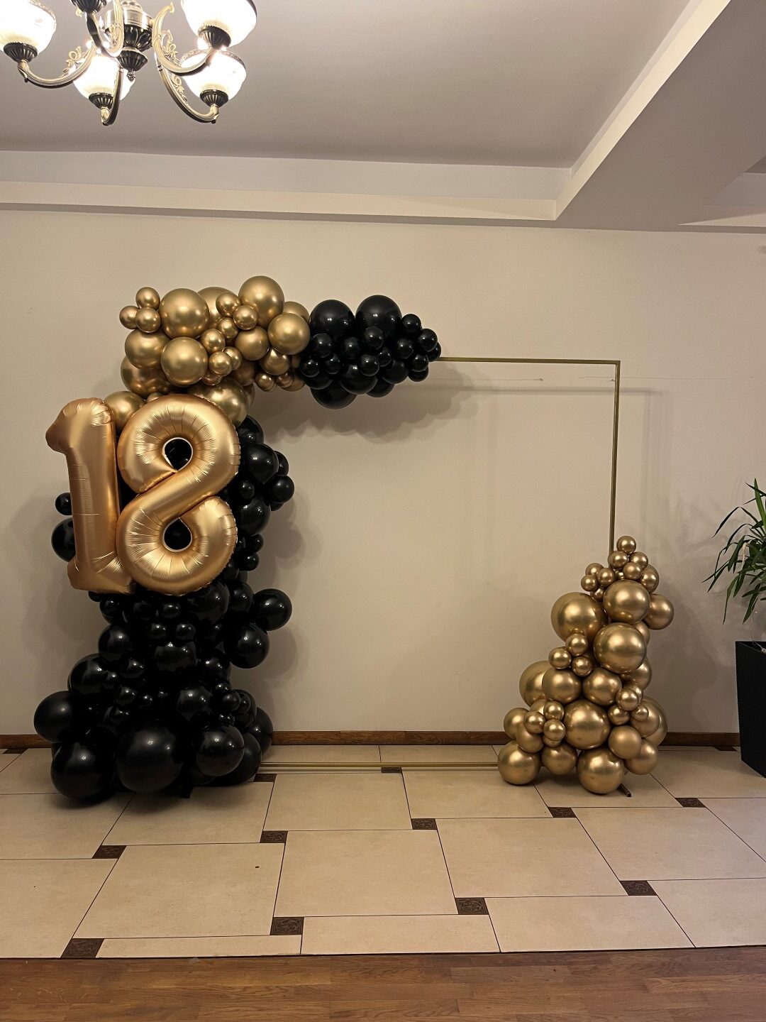 Złoto-czarna ścianka balonowa z okazji 18.urodzin.
