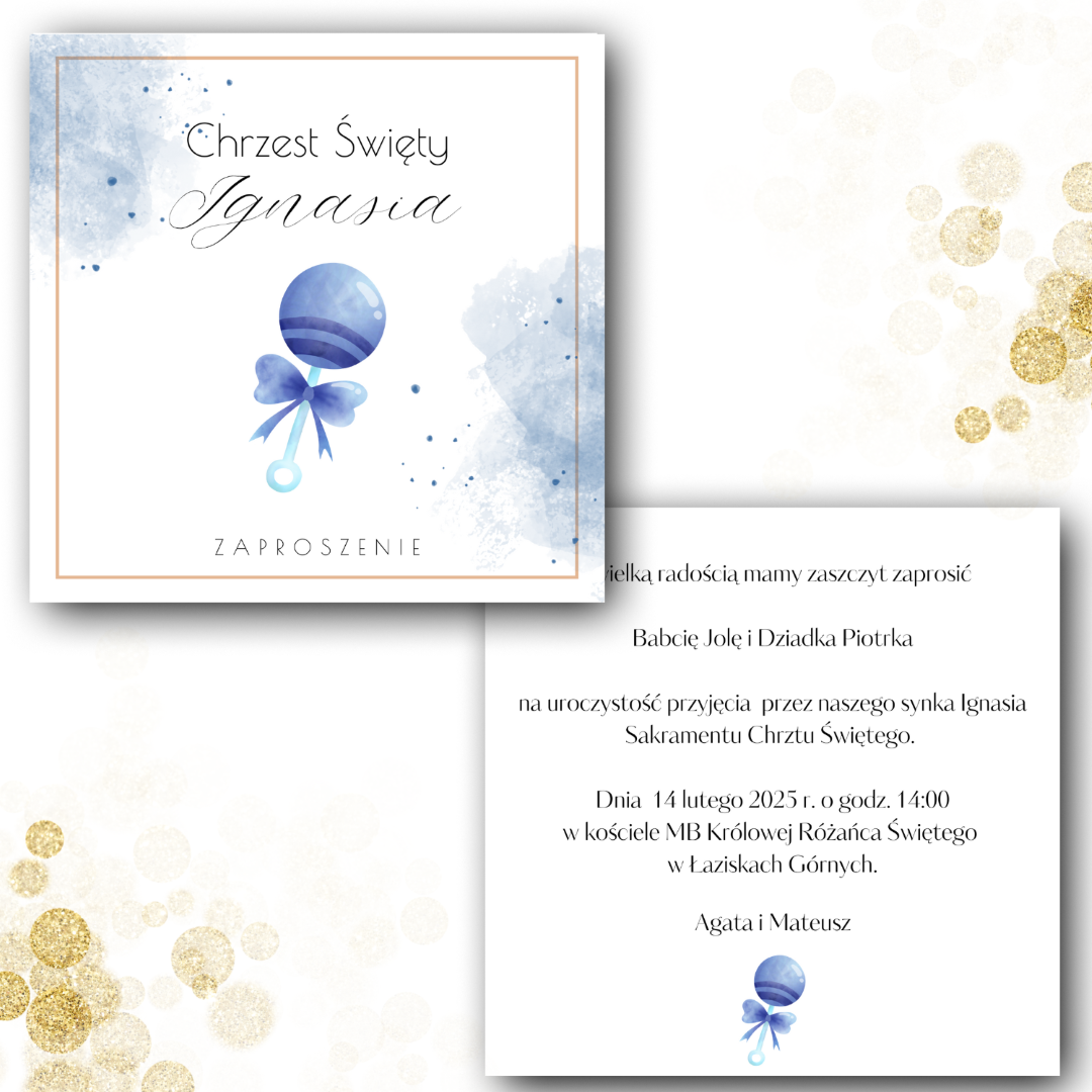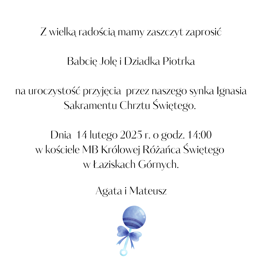 *Przedstawione zaproszenie jest jedynie projektem, który możesz dowolnie modyfikować, zmieniając zarówno czcionki, jak i układ tekstu.