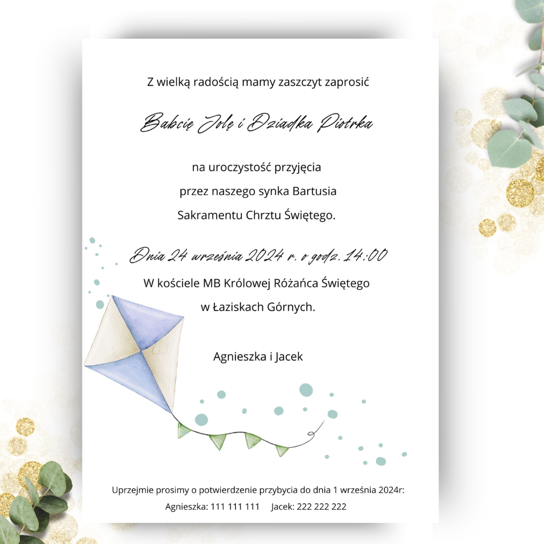 *Przedstawione zaproszenie jest jedynie projektem, który możesz dowolnie modyfikować, zmieniając zarówno czcionki, jak i układ tekstu.