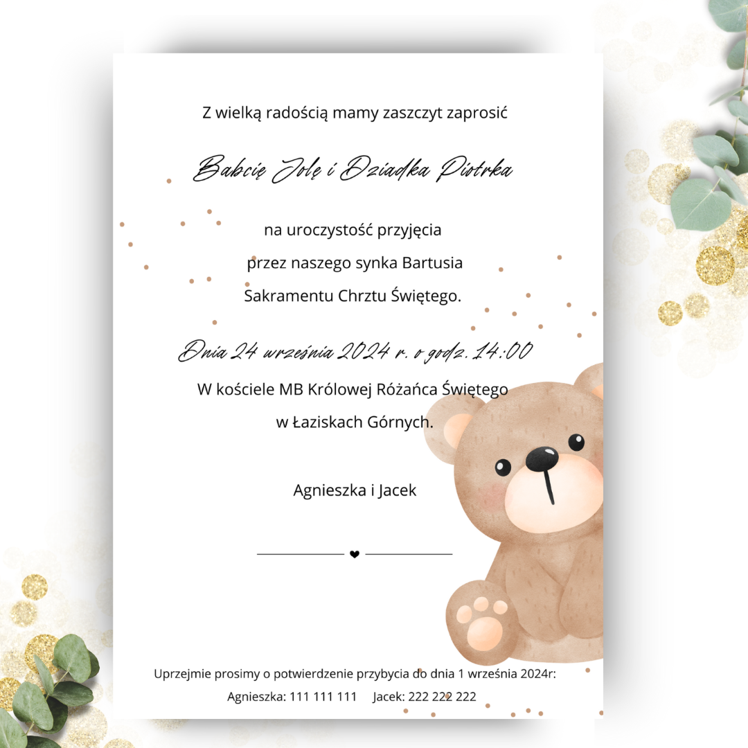 *Przedstawione zaproszenie jest jedynie projektem, który możesz dowolnie modyfikować, zmieniając zarówno czcionki, jak i układ tekstu.