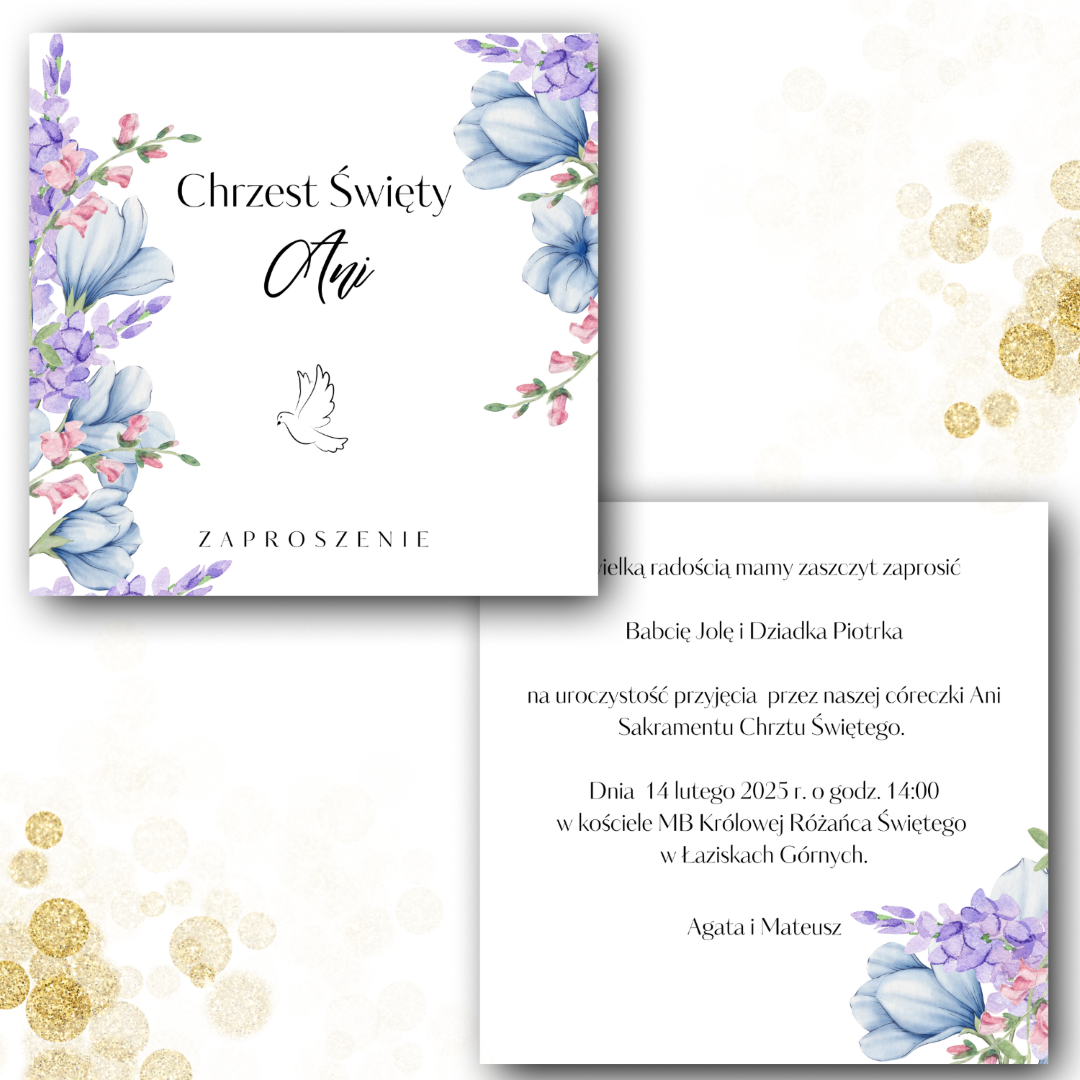 Kwiatowe zaproszenie na Chrzest Święty – Gołąbek