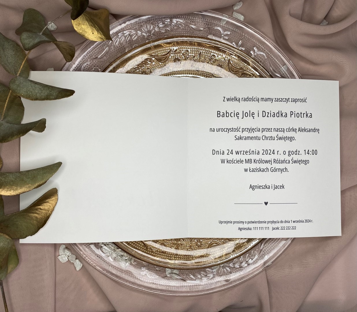 Wymiary zaproszenia: 14 x 28 cm (rozłożone)