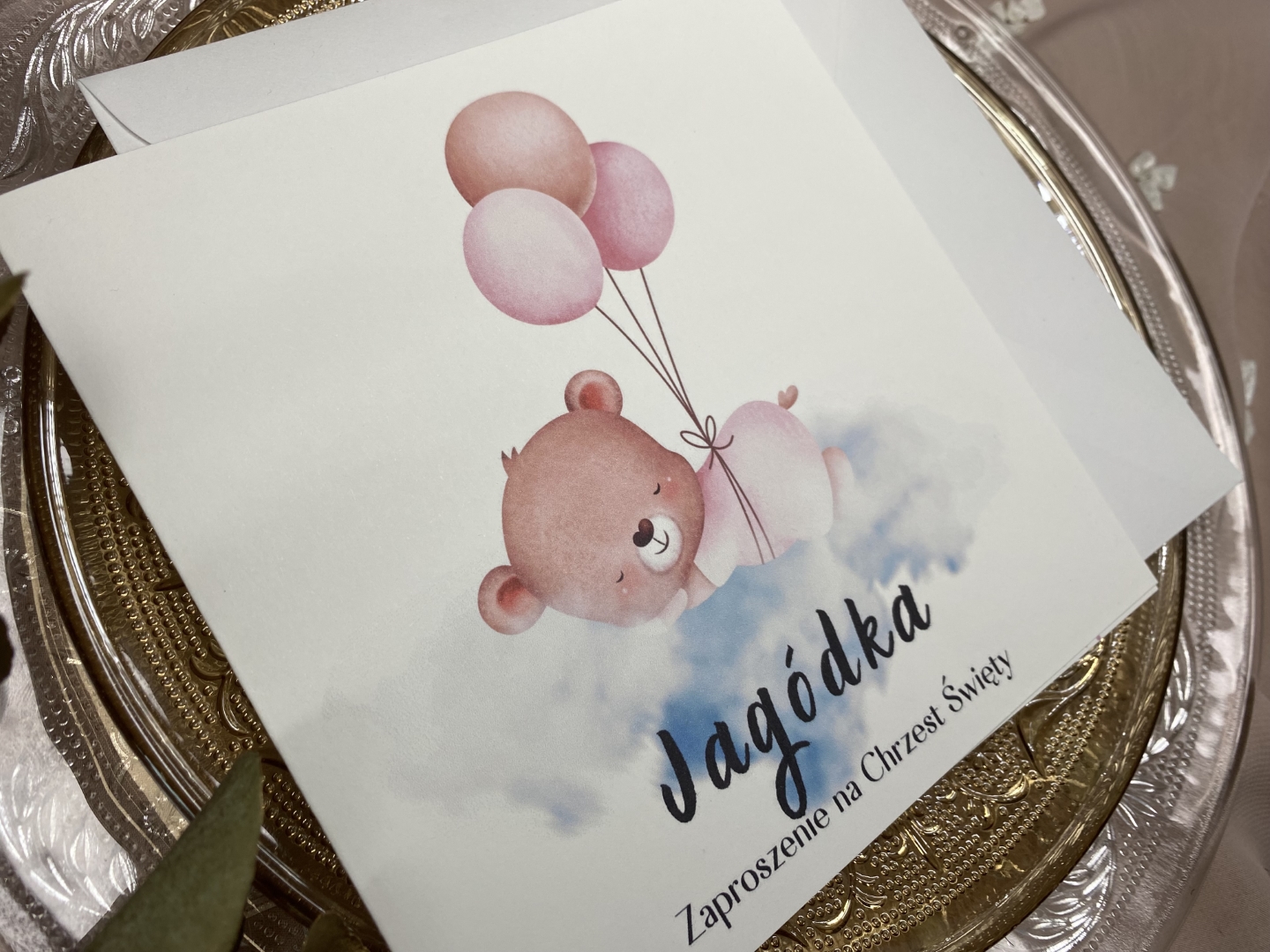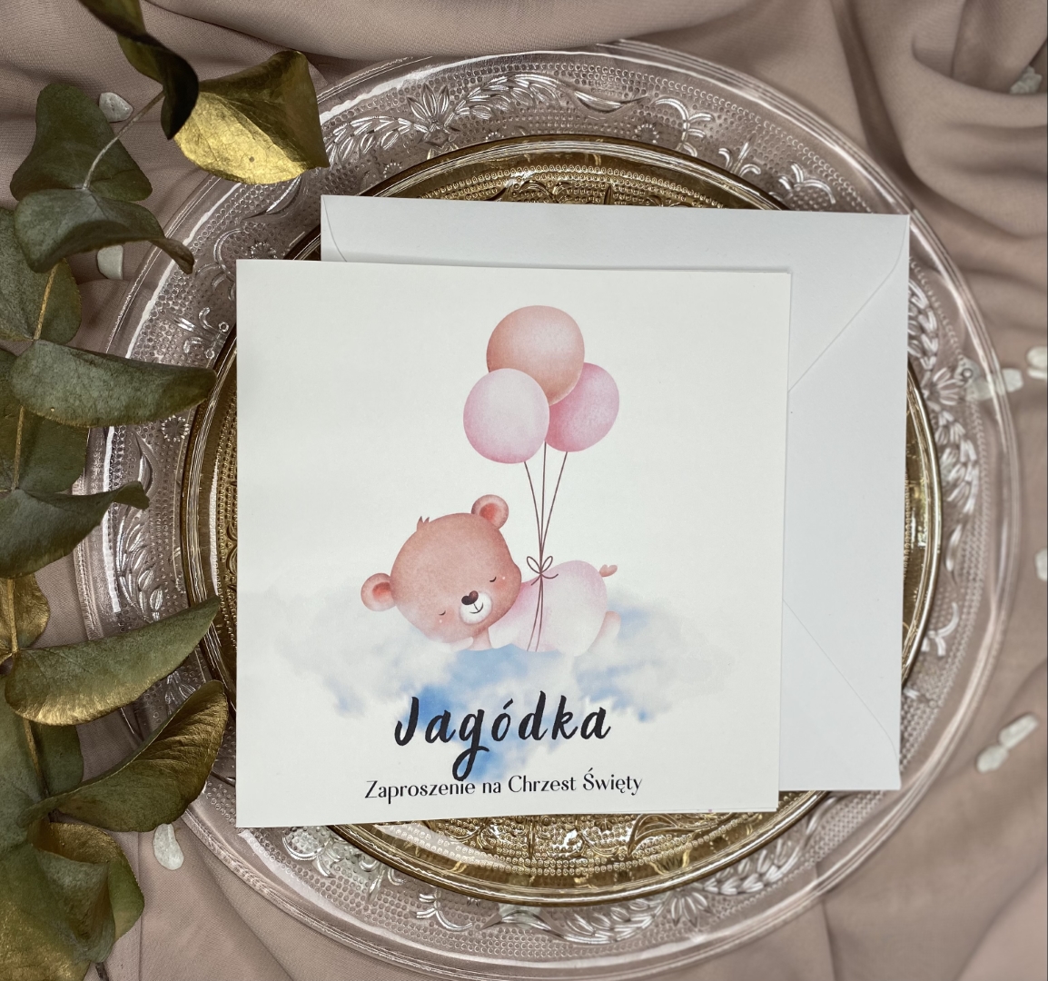 Wymiary zaproszenia: 14 x 14 cm (złożone)