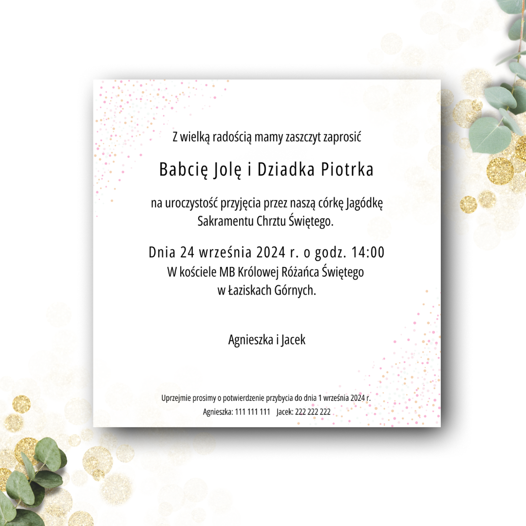*Przedstawione zaproszenie jest jedynie projektem, który możesz dowolnie modyfikować, zmieniając zarówno czcionki, jak i układ tekstu.