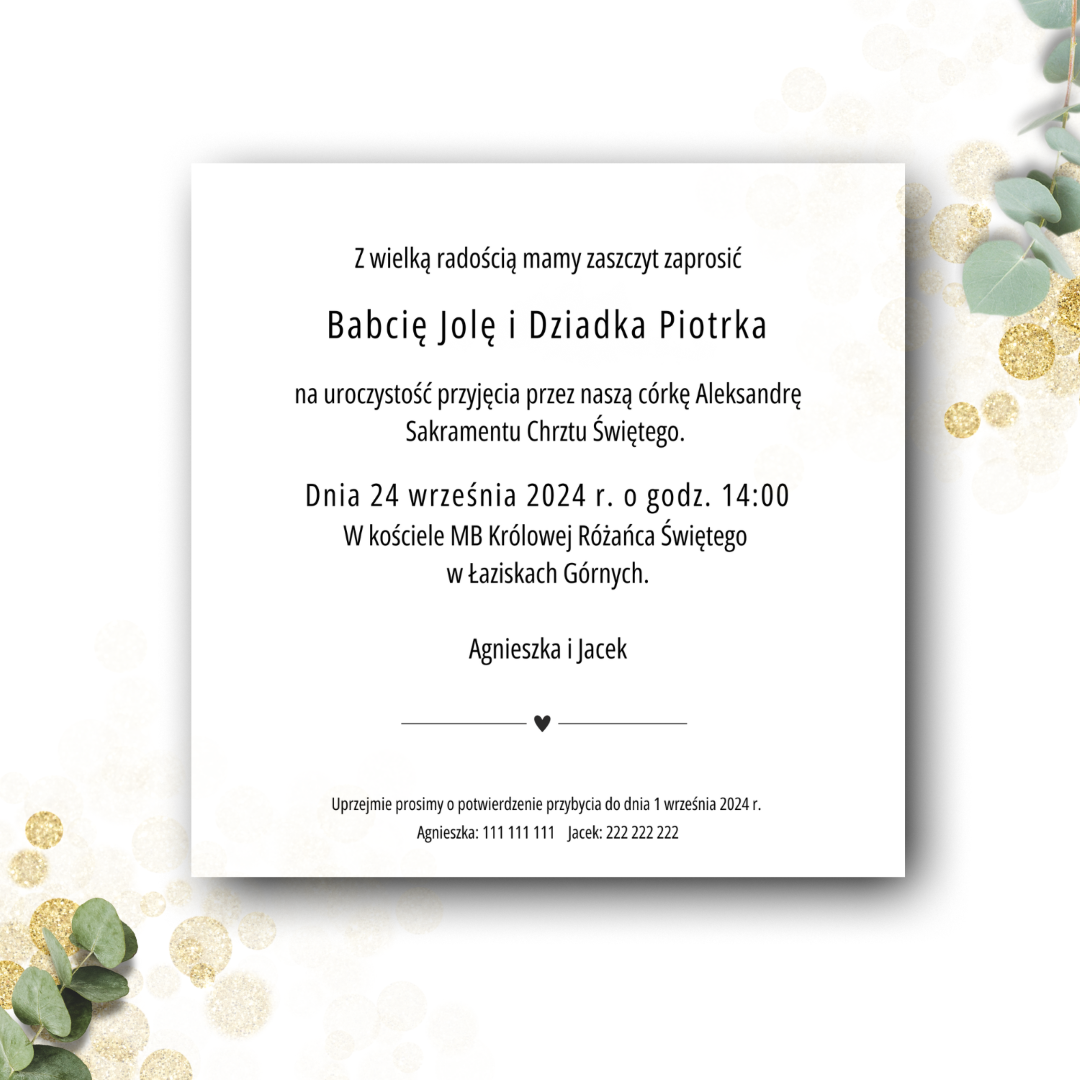 *Przedstawione zaproszenie jest jedynie projektem, który możesz dowolnie modyfikować, zmieniając zarówno czcionki, jak i układ tekstu.