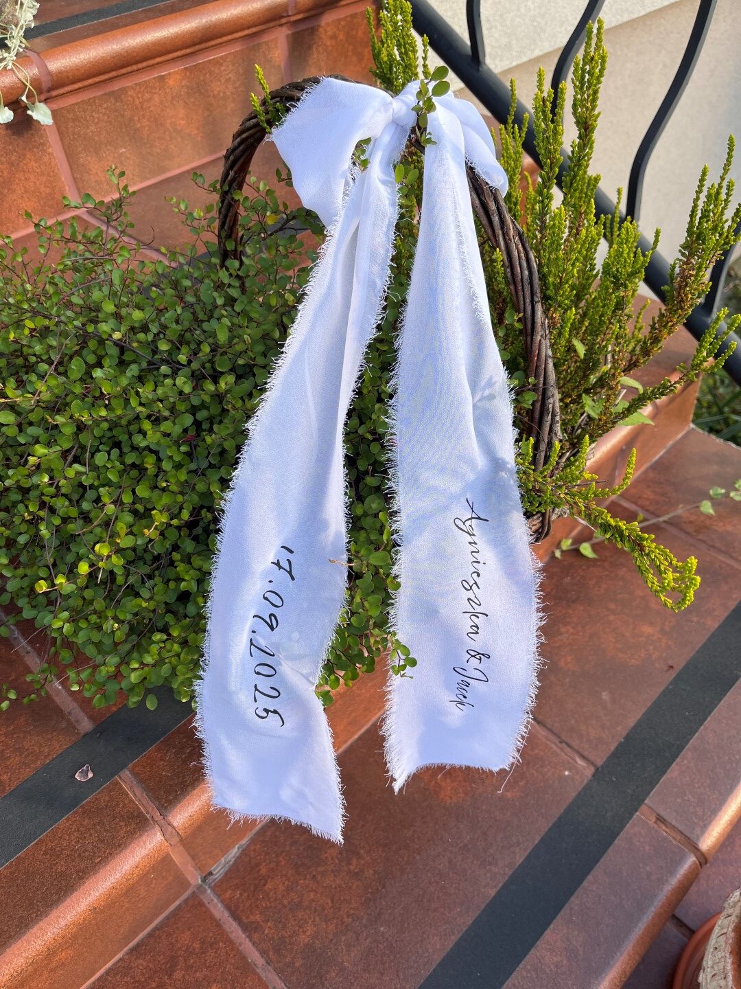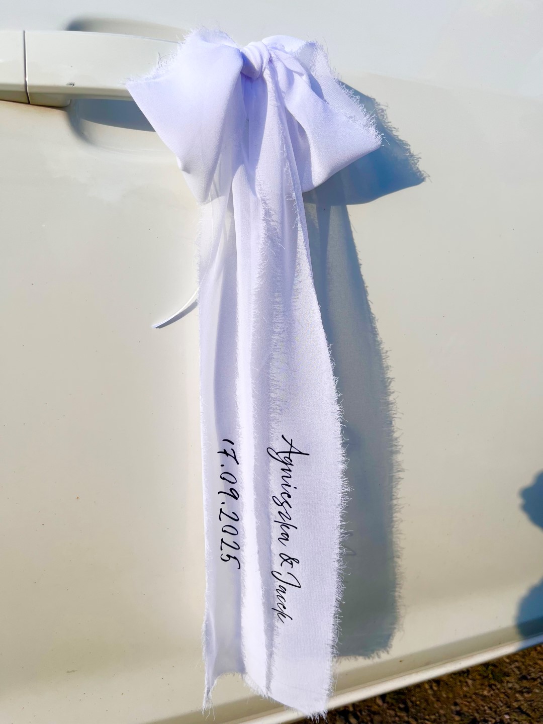 Rodzaj: wstążka na klamkę samochodową lub krzesło, gotowa zawiązana w kokardę