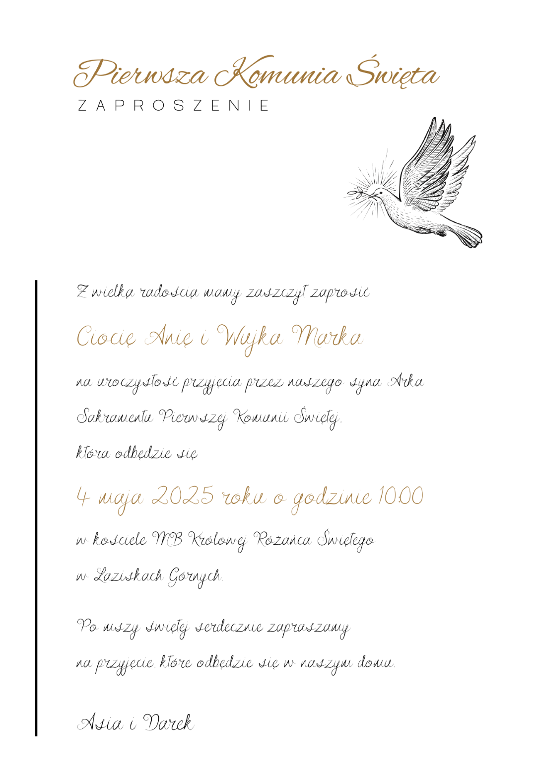 *Przedstawione zaproszenie jest jedynie projektem, który możesz dowolnie modyfikować, zmieniając zarówno czcionki, jak i układ tekstu.