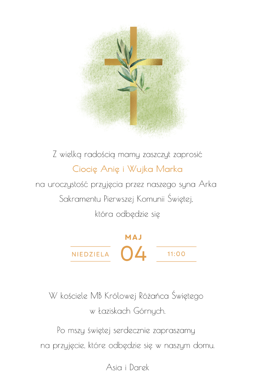 Zaproszenie na Pierwszą Komunię Świętą – Krzyż