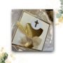 Drewniane pudełko, Pamiątka I Komunii Świętej to doskonały upominek będący jednocześnie kartką oraz pudełkiem na pieniądze.