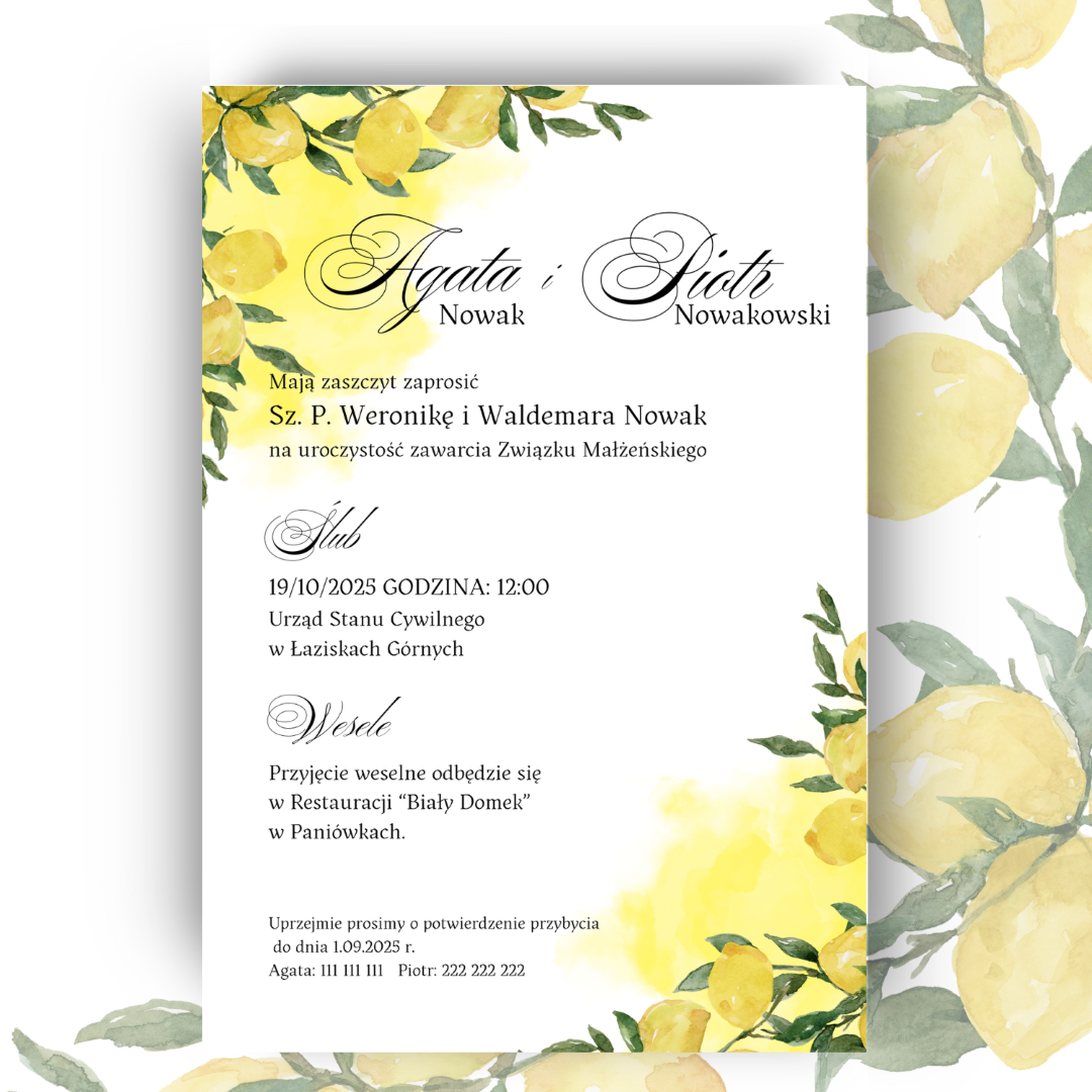 *Przedstawione zaproszenie jest jedynie projektem, który możesz dowolnie modyfikować, zmieniając zarówno czcionki, jak i układ tekstu.
