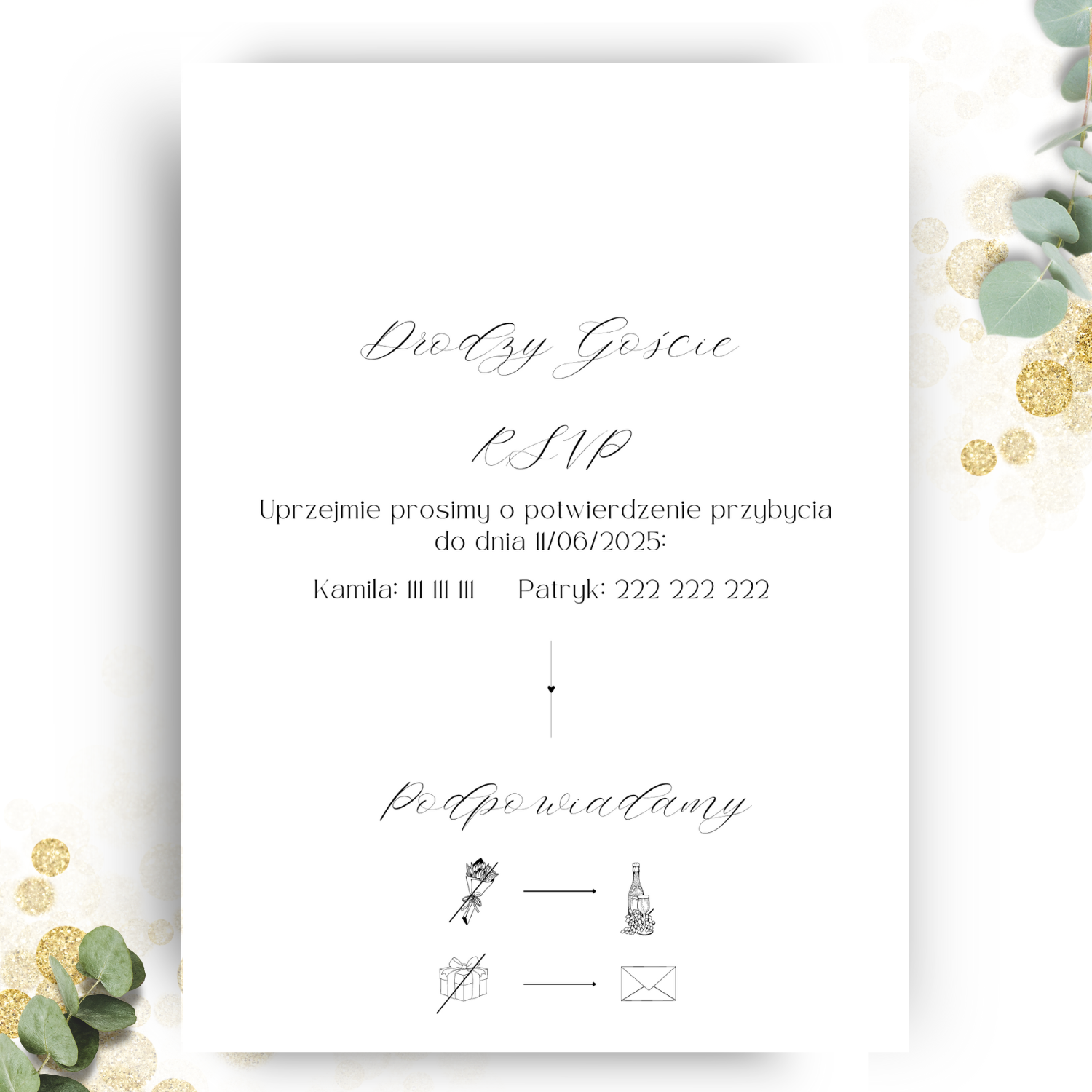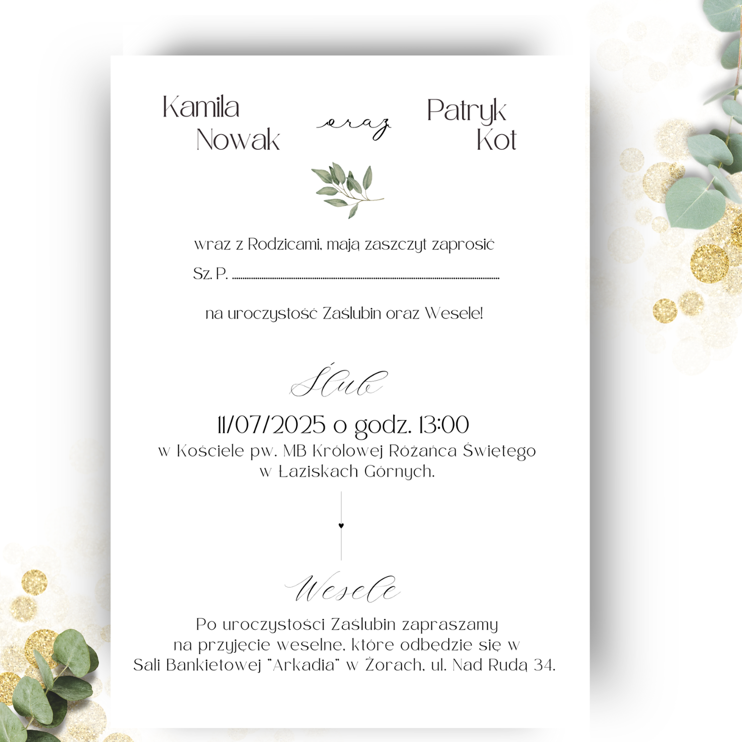 *Przedstawione zaproszenie jest jedynie projektem, który możesz dowolnie modyfikować, zmieniając zarówno czcionki, jak i układ tekstu.