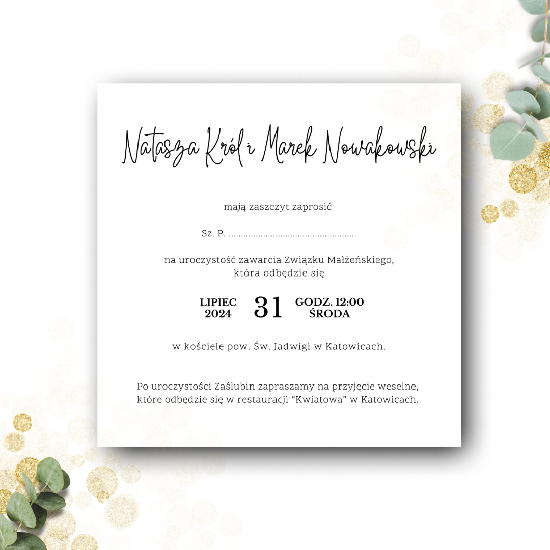 Wymiary zaproszenia: 14 x 14 cm (złożone)