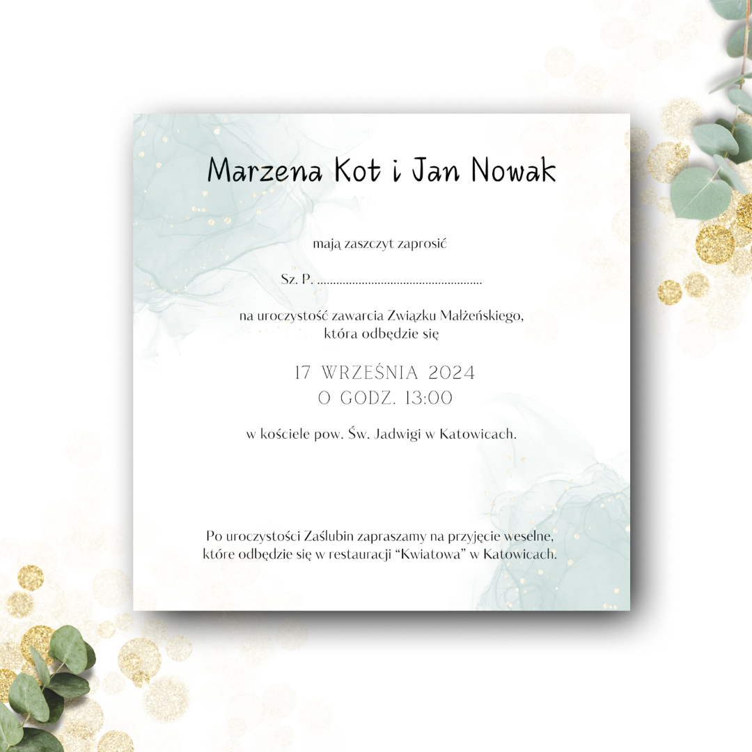 Wymiary zaproszenia: 14 x 14 cm (złożone)