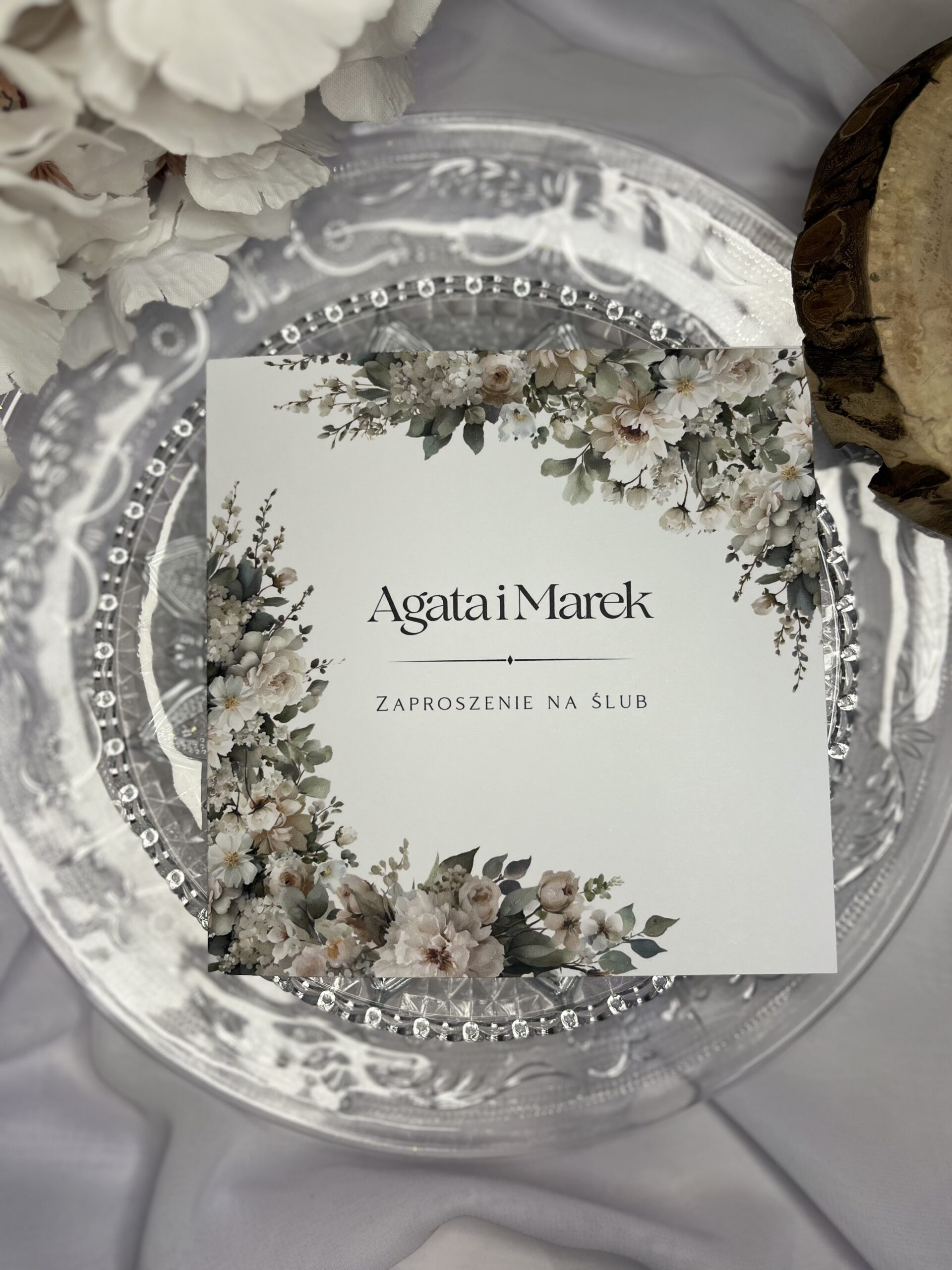 Wymiary zaproszenia: 14 x 14 cm (złożone)