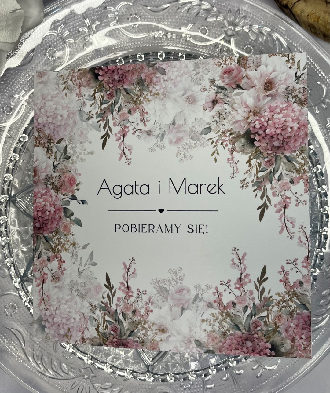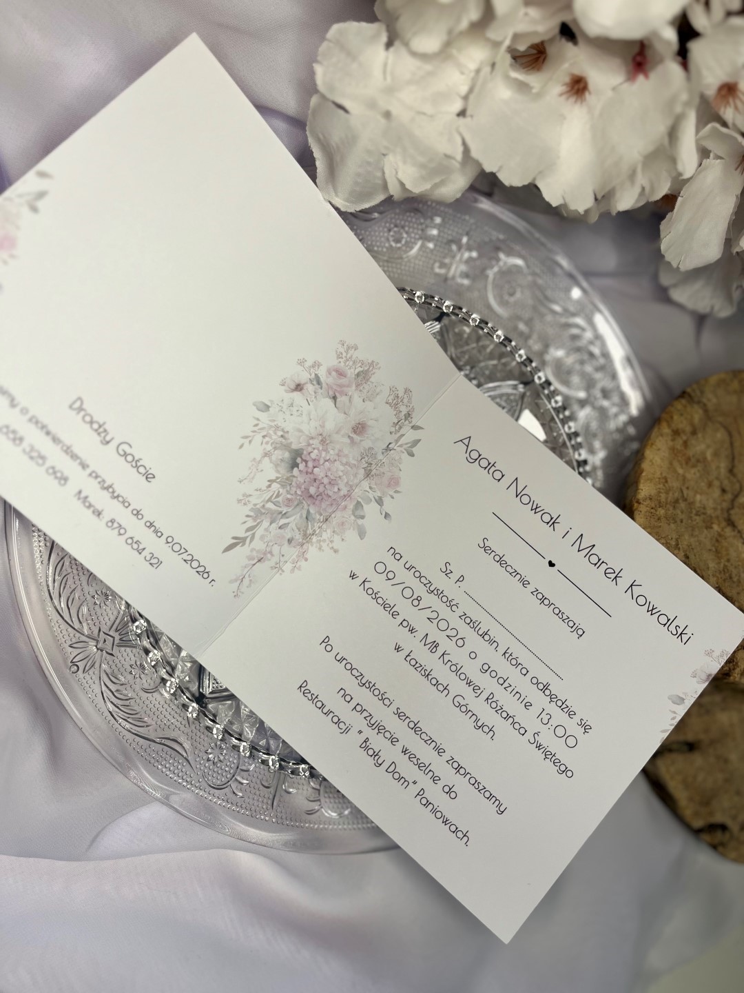Wymiary zaproszenia: 14 x 14 cm (złożone)