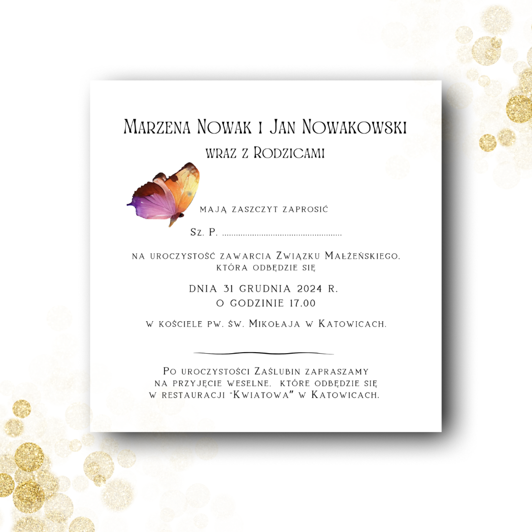 *Przedstawione zaproszenie jest jedynie projektem, który możesz dowolnie modyfikować, zmieniając zarówno czcionki, jak i układ tekstu.