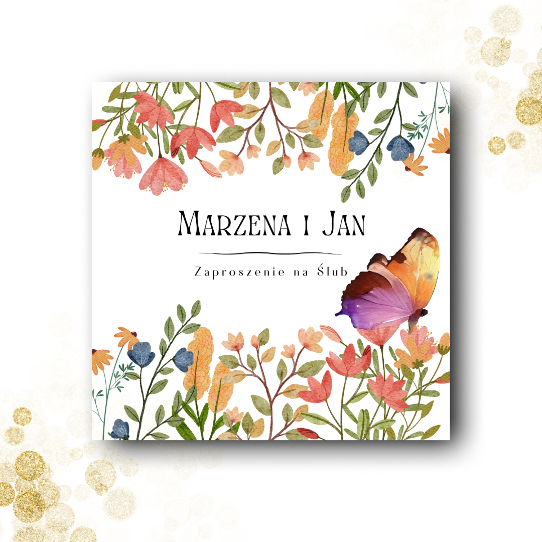 Wymiary zaproszenia: 14 x 14 cm (złożone)
