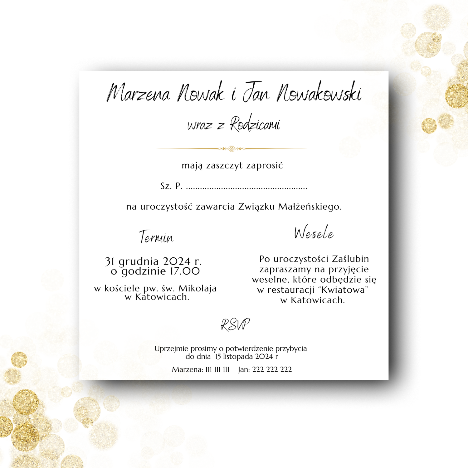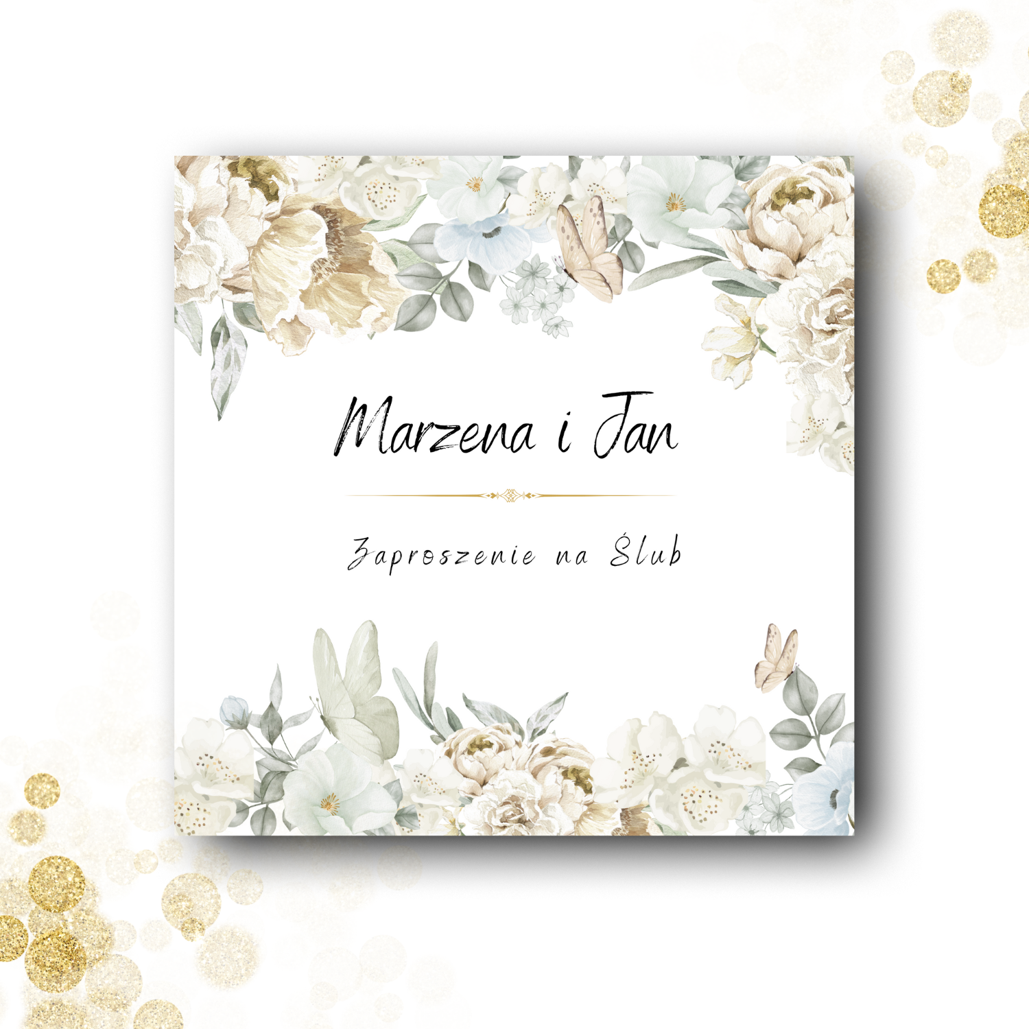 Wymiary zaproszenia: 14 x 14 cm (złożone)