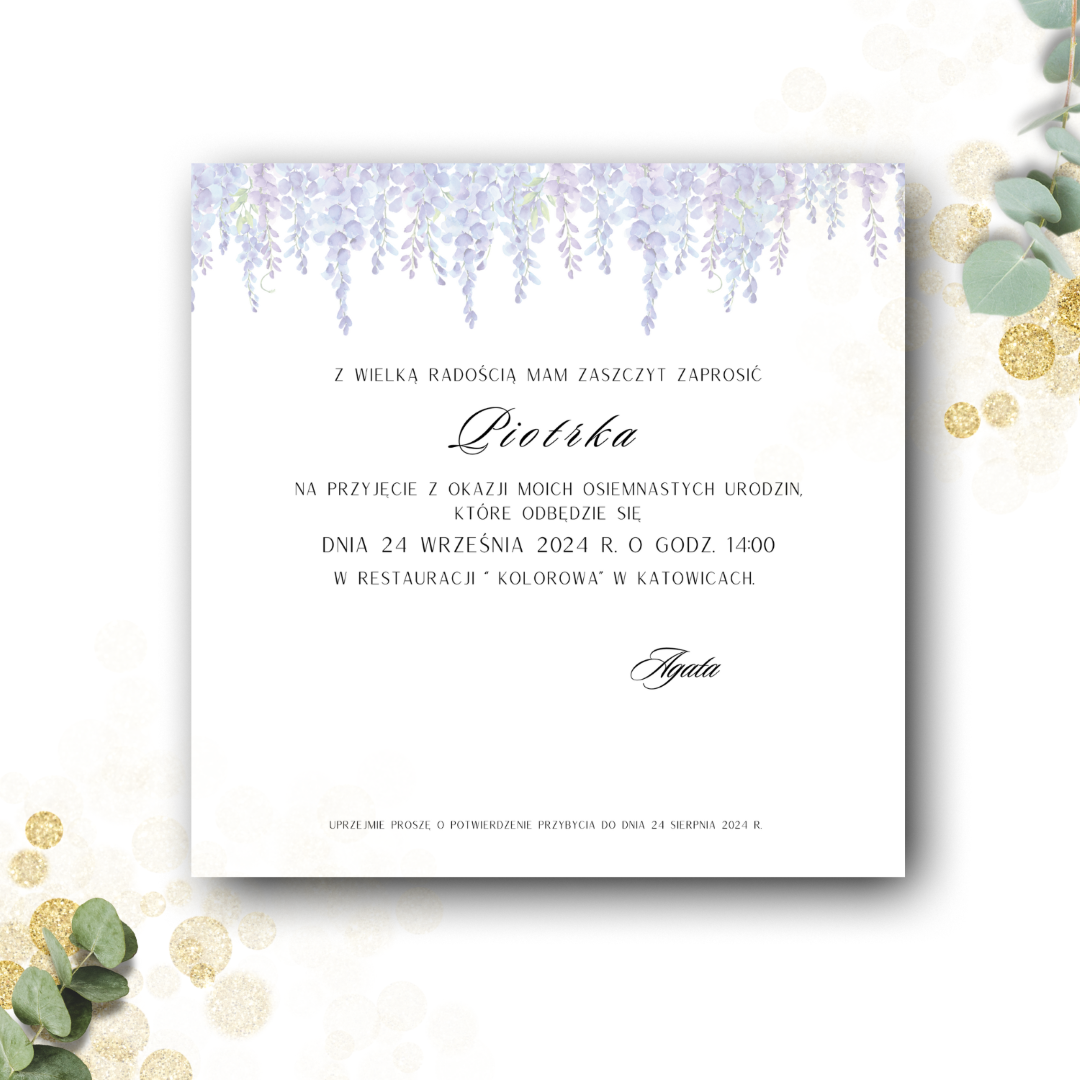 *Przedstawione zaproszenie jest jedynie projektem, który możesz dowolnie modyfikować, zmieniając zarówno czcionki, jak i układ tekstu.