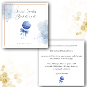 Zaproszenie na Chrzest Święty -Grzechotka niebieska