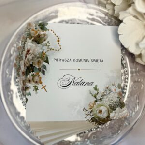 Zaproszenie na I Komunię Świętą – Biała elegancja