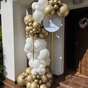Biało złota girlanda na stelażu 3d – dekoracja domu w dniu ślubu