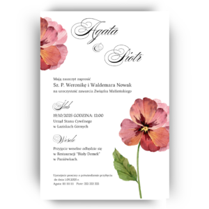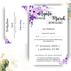 Zaproszenie ślubne jednokartkowe z wkładką – Fioletowe kwiaty