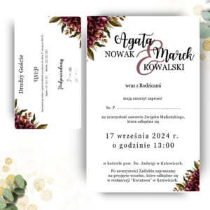 Zaproszenie ślubne jednokartkowe z wkładką – Bordowe kwiaty