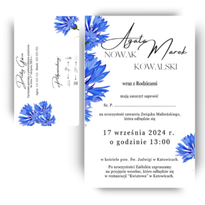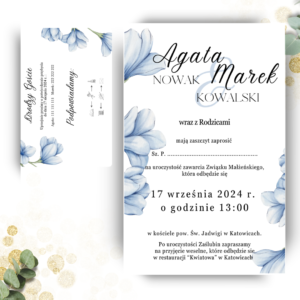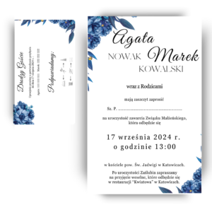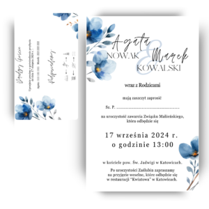 Zaproszenie ślubne jednokartkowe z wkładką – Błękitna frezja