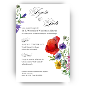 Zaproszenie ślubne jednokartkowe. Kolorowa łąka.