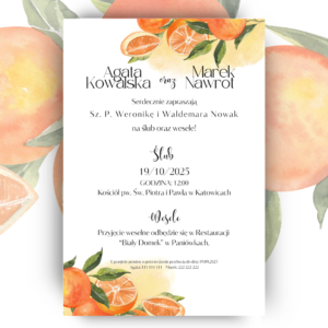 Zaproszenie ślubne jednokartkowe. Pomarańczowa elegancja.
