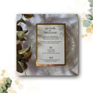 Zaproszenie ślubne z opaską z kalki-Złota gałązka