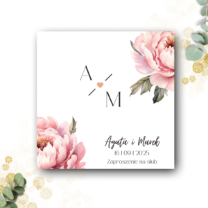 Zaproszenie ślubne z motywem kwiatowym – Różowa peonia